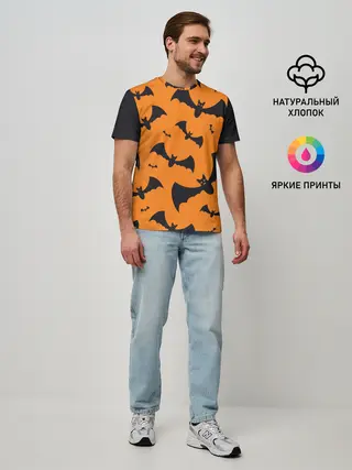 Мужская базовая футболка / ЛЕТУЧАЯ МЫШЬ В ДЕНЬ ХЭЛЛОУИНА