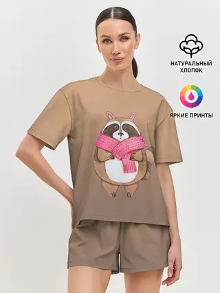 Женская пижама с шортами / акварельный енотик