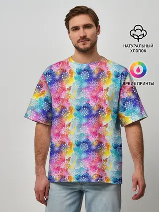 Мужская футболка оверсайз / Радужные Снежные Узоры