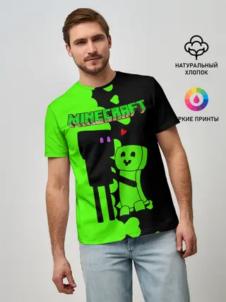 Мужская футболка оверсайз / Любовь Эндермена и Крипера Майнкрафт