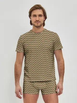 Мужские трусы с футболкой / Абстракция разноцветные зигзаги