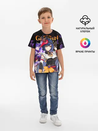 Детская базовая футболка / Genshin Impact: Сара, Чжун Ли, Сёгун Райдэн