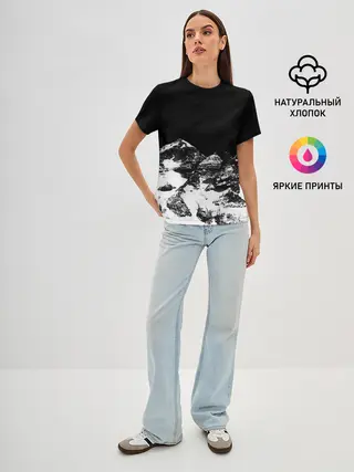 Женская футболка оверсайз / ГОРЫ Ч/Б