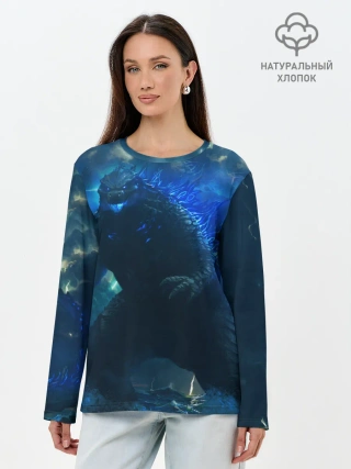 Лонгслив женский. Хлопок / ГОДЗИЛЛА В МОРЕ