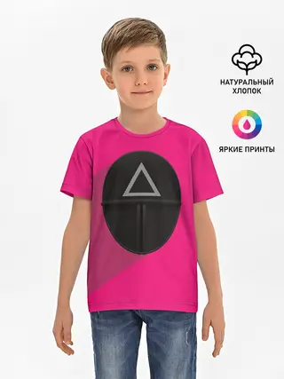 Детская базовая футболка / ИГРА В КАЛЬМАРА МАСКА ТРЕУГОЛЬНИК С ТЕНЬЮ