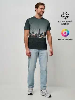 Мужская футболка оверсайз / Вид на Нью Йорк