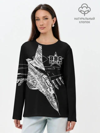 Лонгслив женский. Хлопок / Истребитель штрихом ВВС России