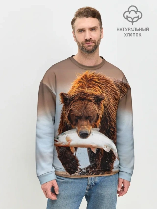 Мужской свитшот базовый / Медведь с рыбой во рту