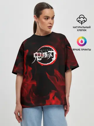 Женская футболка оверсайз / Клинок рассекающий демонов пламя.