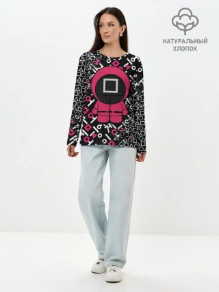 Лонгслив женский. Хлопок / ИГРА В КАЛЬМАРА СТРАЖ КВАДРАТ | SQUID GAME