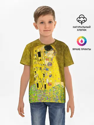 Детская базовая футболка / Влюблённые поцелуй художник Климт