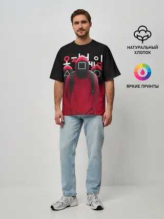 Мужская футболка оверсайз / ИГРА В КАЛЬМАРА, СТРАЖИ ИГРЫ / SQUID GAME