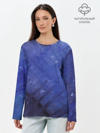 Лонгслив женский. Хлопок / Синие акварельные мазки