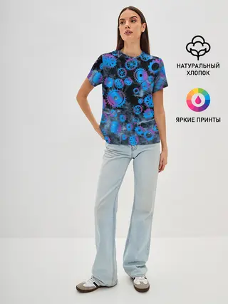 Женская футболка оверсайз / механизм и дым, стимпанк