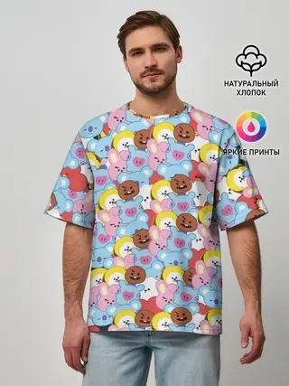 Мужская футболка оверсайз / BTS BT21 STICKERS