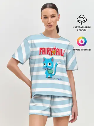 Женская пижама с шортами / Кот на полосочках