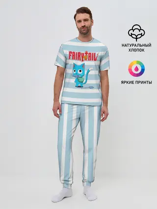 Мужская пижама с брюками / Кот на полосочках