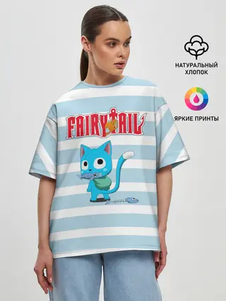 Женская футболка оверсайз / Кот на полосочках