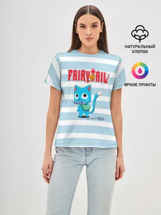 Женская базовая футболка / Кот на полосочках