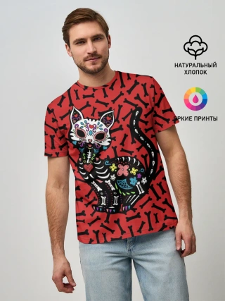 Мужская базовая футболка / Мексиканская Сахарная Кошка