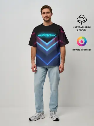 Мужская футболка оверсайз / CYBERPUNK 2077 NEON | НЕОН