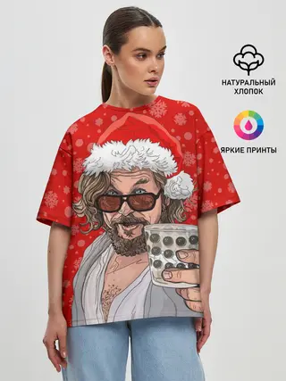 Женская футболка оверсайз / Лебовски Санта