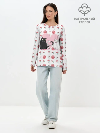 Лонгслив женский. Хлопок / Милые котики
