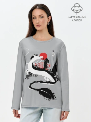 Лонгслив женский. Хлопок / Тихиро гладит Хаку