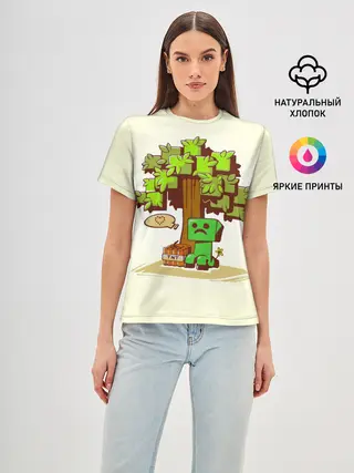 Женская базовая футболка / Майнкрафт, Крипер