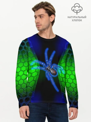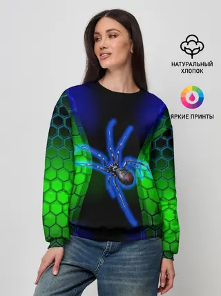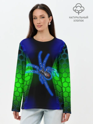 Лонгслив женский. Хлопок / Паук на ночной охоте