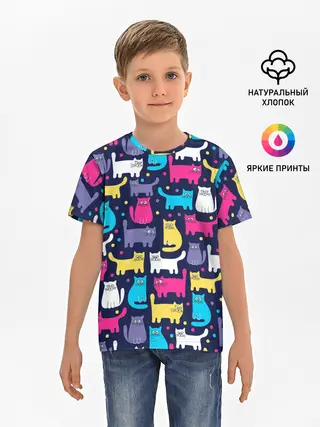 Детская базовая футболка / Разноцветные котики