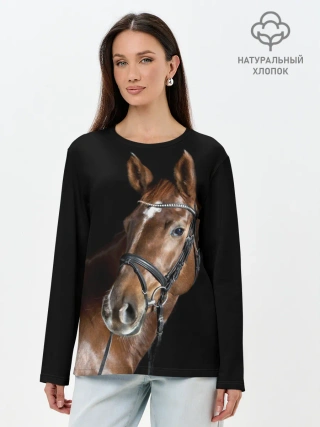 Лонгслив женский. Хлопок / Гнедая лошадь