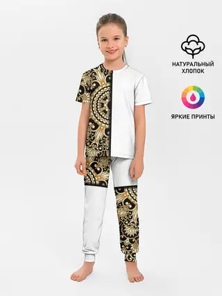 Детская пижама с брюками / Белое на черном