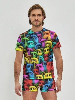 Мужской костюм с шортами / Разноцветные сердитые коты