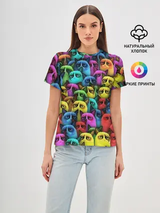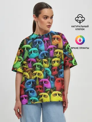 Женская футболка оверсайз / Разноцветные сердитые коты