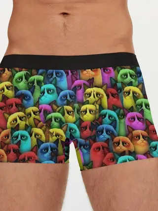Мужские трусы боксеры / Разноцветные сердитые коты