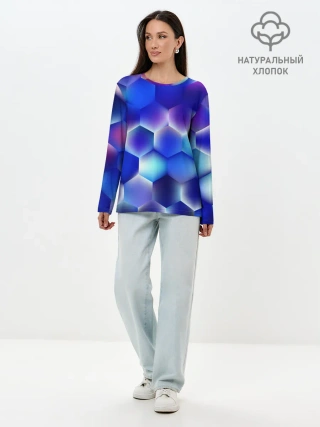 Лонгслив женский. Хлопок / Синяя чешуя змеи