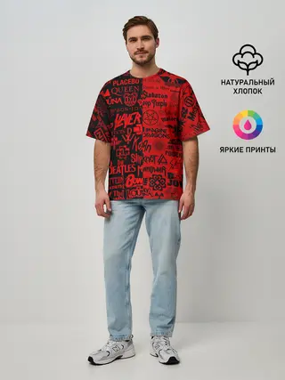 Мужская футболка оверсайз / ЛОГОТИПЫ РОК ГРУПП | ROCK