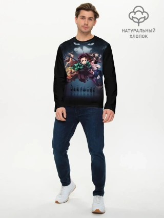 Мужской лонгслив базовый / Kimetsu no Yaiba на черном