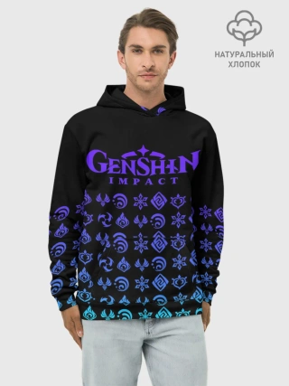Худи мужской база хлопок / GENSHIN IMPACT | ЭМБЛЕМЫ NEON