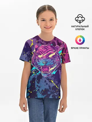 Детская базовая футболка / НЕОНОВЫЙ ТИГР / NEON TIGER