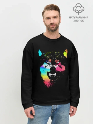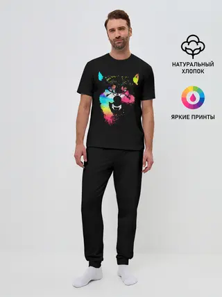 Мужской лонгслив базовый / Неоновый свирепый волк