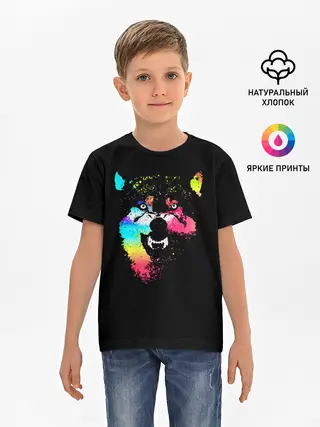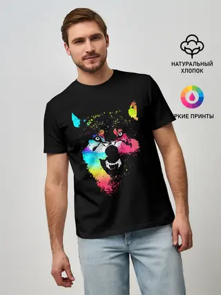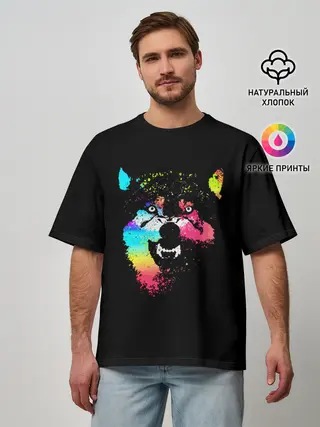 Мужская футболка оверсайз / Неоновый свирепый волк