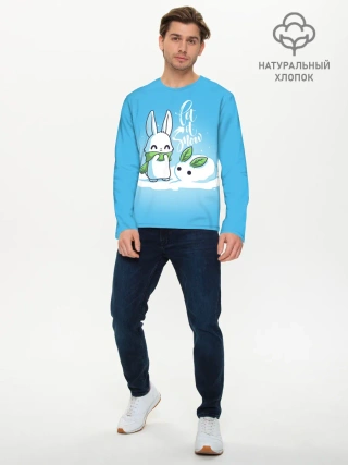 Мужской лонгслив базовый / Let it snow. Зайчик и снежок