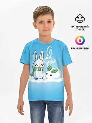 Детская базовая футболка / Let it snow. Зайчик и снежок