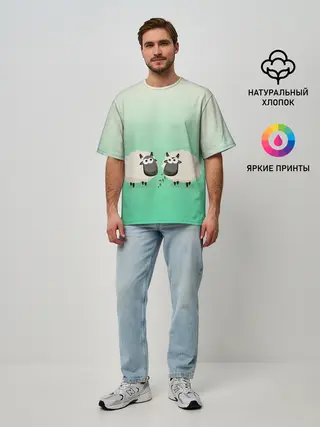 Мужская футболка оверсайз / две овечки пасутся на лугу