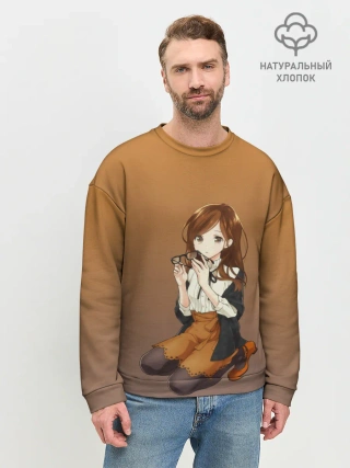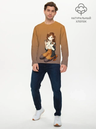 Мужской лонгслив базовый / анимешная девочка очки офис