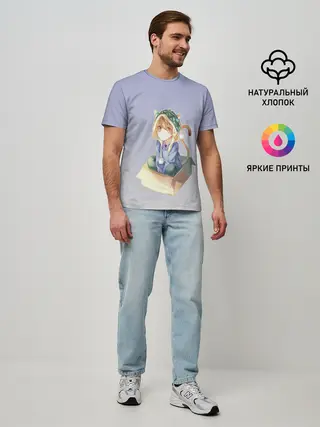 Мужская базовая футболка / мальчик кот в коробке уши мяу