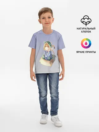 Детская базовая футболка / мальчик кот в коробке уши мяу