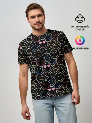 Мужская базовая футболка / SLAVA MARLOW - Неоновые смайлы